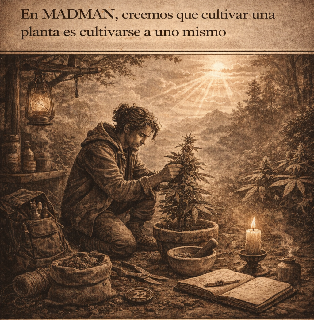 En MADMAN, creemos que el acto de cultivar una planta es un reflejo del arte de cultivarse a uno mismo. Cada semilla que germina, cada hoja que se despliega, cada flor que madura, es una lección de paciencia, observación y conexión. Un verdadero cultivador no solo nutre su jardín, sino que también nutre su mente, su cuerpo y su espíritu, transformándose en un ser completo y en armonía con su entorno.