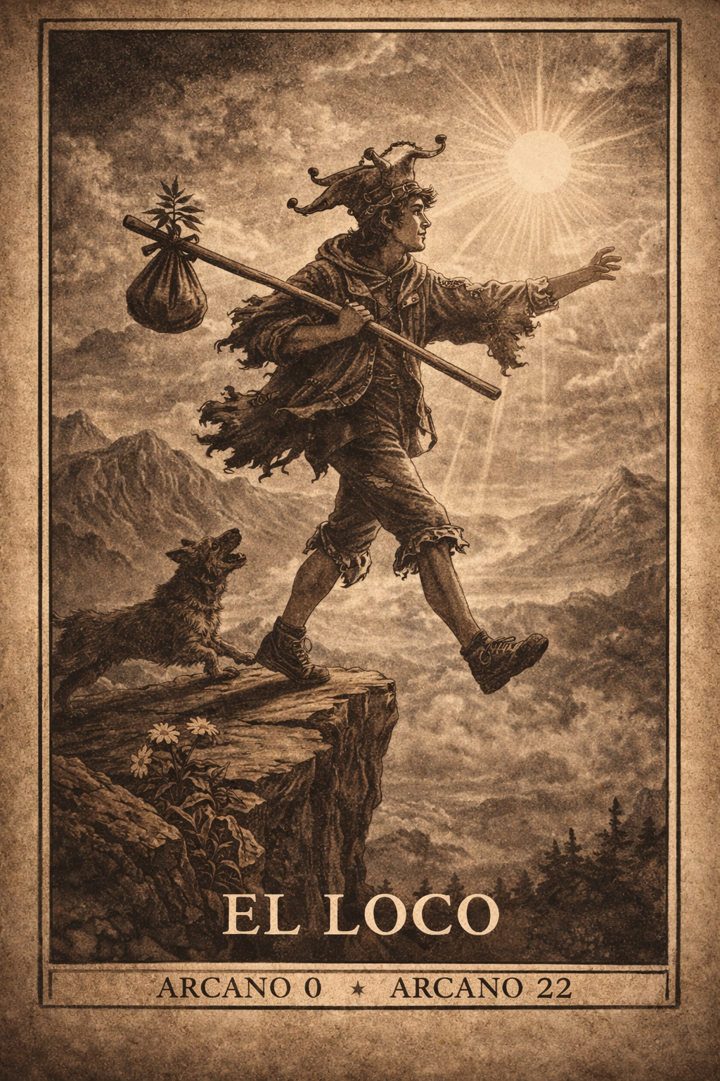 Nuestra inspiración nace de uno de los arquetipos más libres y poderosos del Tarot: El Loco (Arcano 0 y 22). Es el principio del viaje, pero también su final.Representa el comienzo de un camino nuevo, la curiosidad, la creatividad y la valentía de avanzar hacia lo desconocido. El Loco camina con un pie en la tierra y otro en el aire.